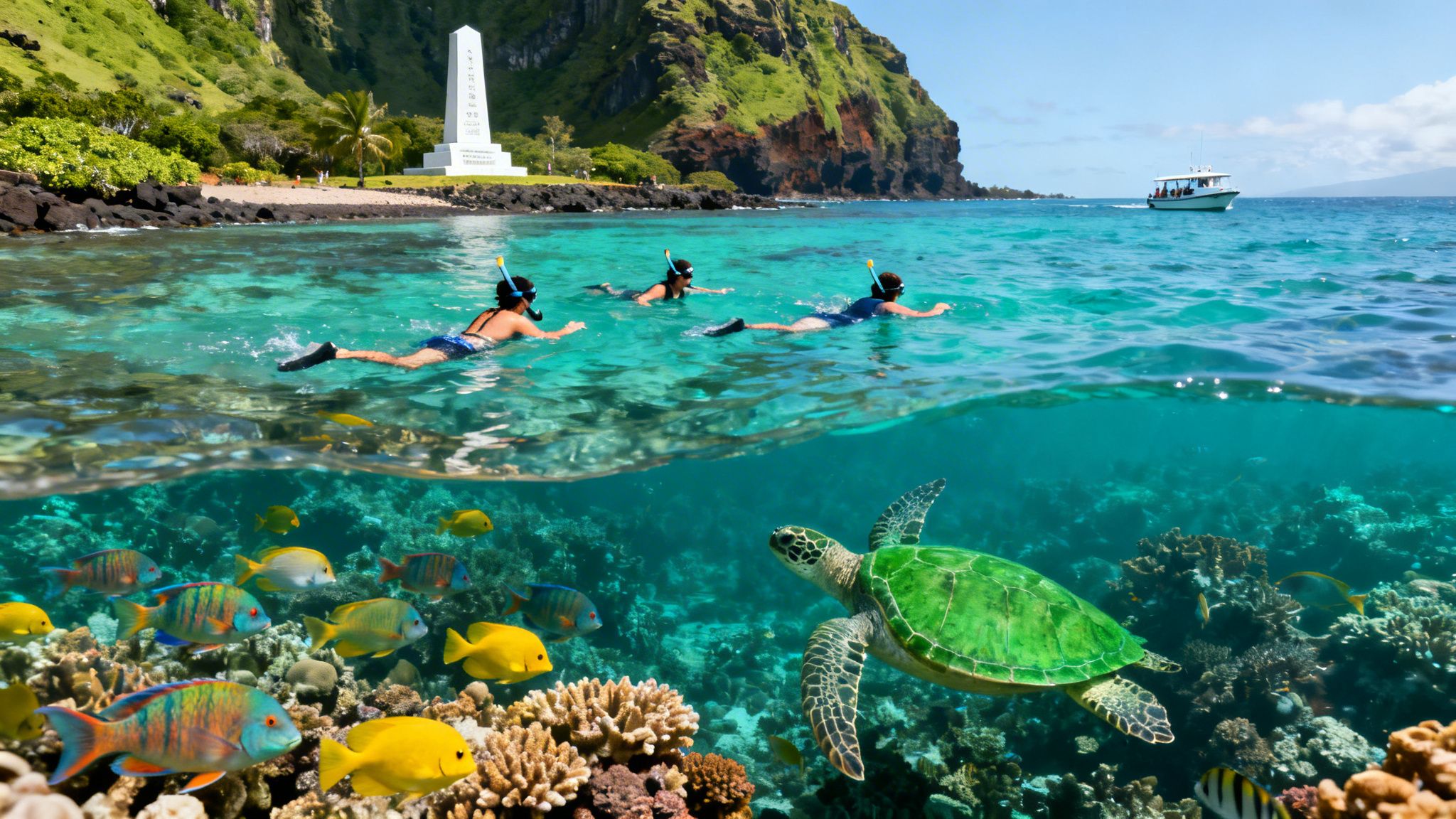 - A Historic Backdrop: That striking white obelisk you see on the shoreline is the Captain Cook monument, adding a unique layer of history to your underwater adventure.