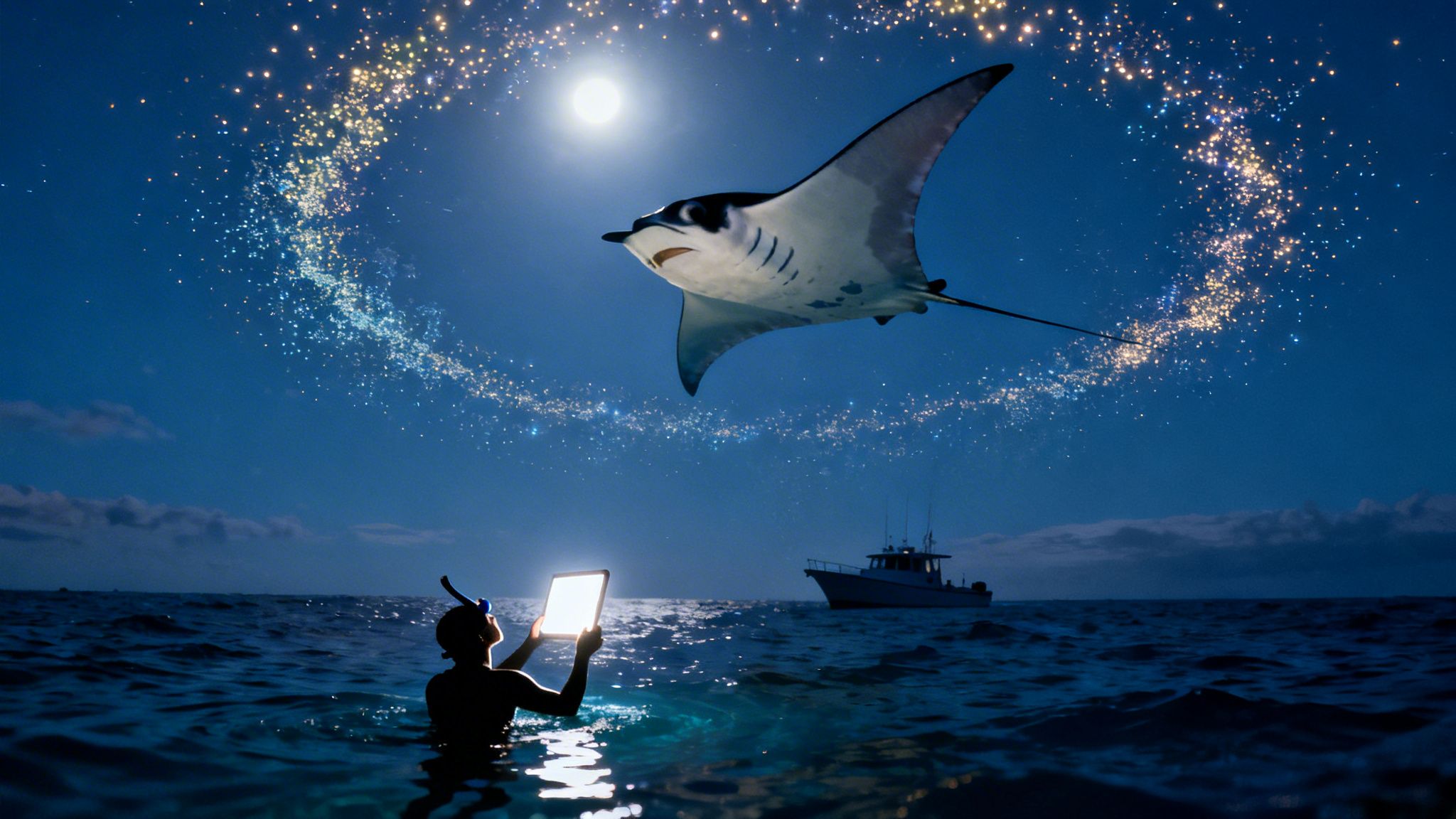 - The Snorkeler's Light Board: Snorkelers get the opposite view! You'll float comfortably at the surface, holding onto a specially made light board that shines down into the water. This brings the mantas right up to you for a spectacular, face-to-face feeding show.