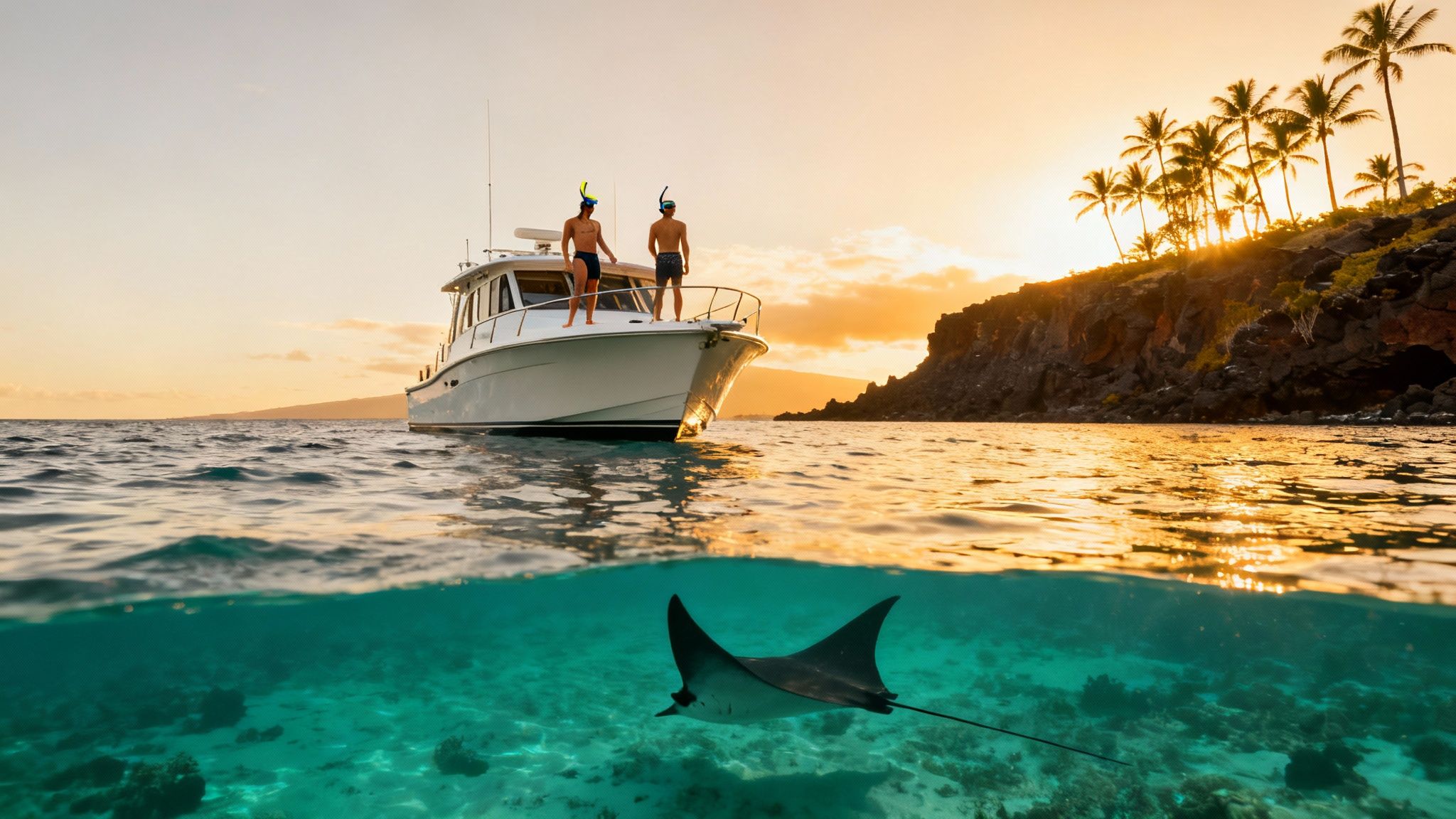 Or maybe you want to explore the remote coastlines and sea caves that the bigger tour boats simply can't get into. The entire focus is on what you want to do, and the crew is there to make it happen safely and memorably. And if you're curious about one of the island's most iconic wildlife encounters, you should check out our guide on the night snorkel with manta rays in Hawaii.