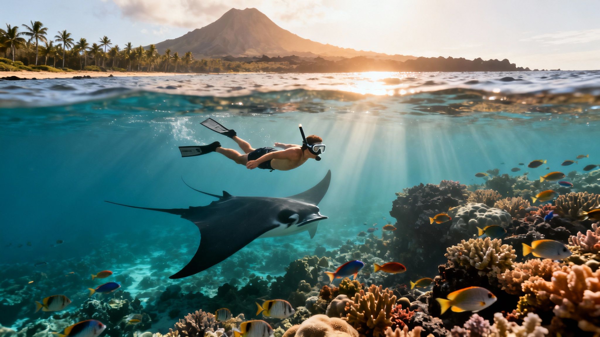 The island is also home to two of Hawaii's most iconic underwater adventures, and they couldn't be more different. A daytime trip to Kealakekua Bay is like jumping into a sunlit aquarium full of history and color. Then there's the Manta Ray Night Snorkel—a surreal, bucket-list encounter that happens long after the sun goes down.