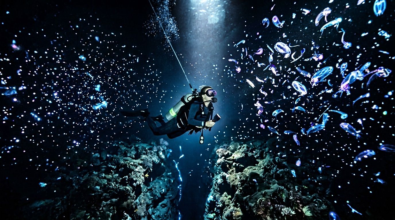 - Bioluminescent Organisms: The darkness sparkles to life. You’ll see glowing comb jellies pulsing with rainbow colors and tiny squid that light up like fireflies.