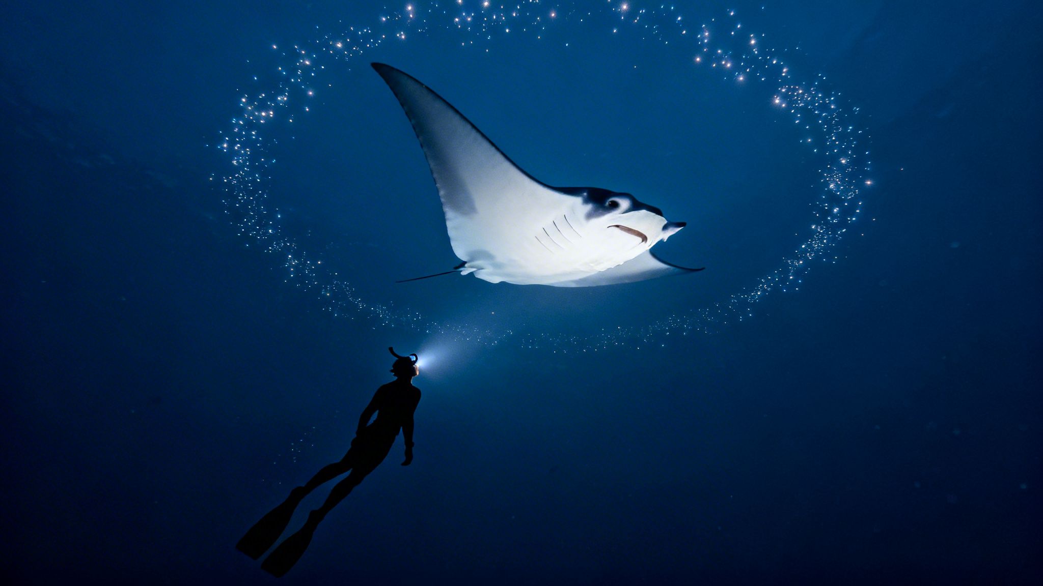 This whole phenomenon was actually discovered by accident decades ago. Divers back then realized that mantas were curiously drawn to the beams of their underwater lights after sunset. That sparked a brilliant, simple idea: what if you could create a "campfire" of light on purpose to attract the plankton, and by extension, the mantas?