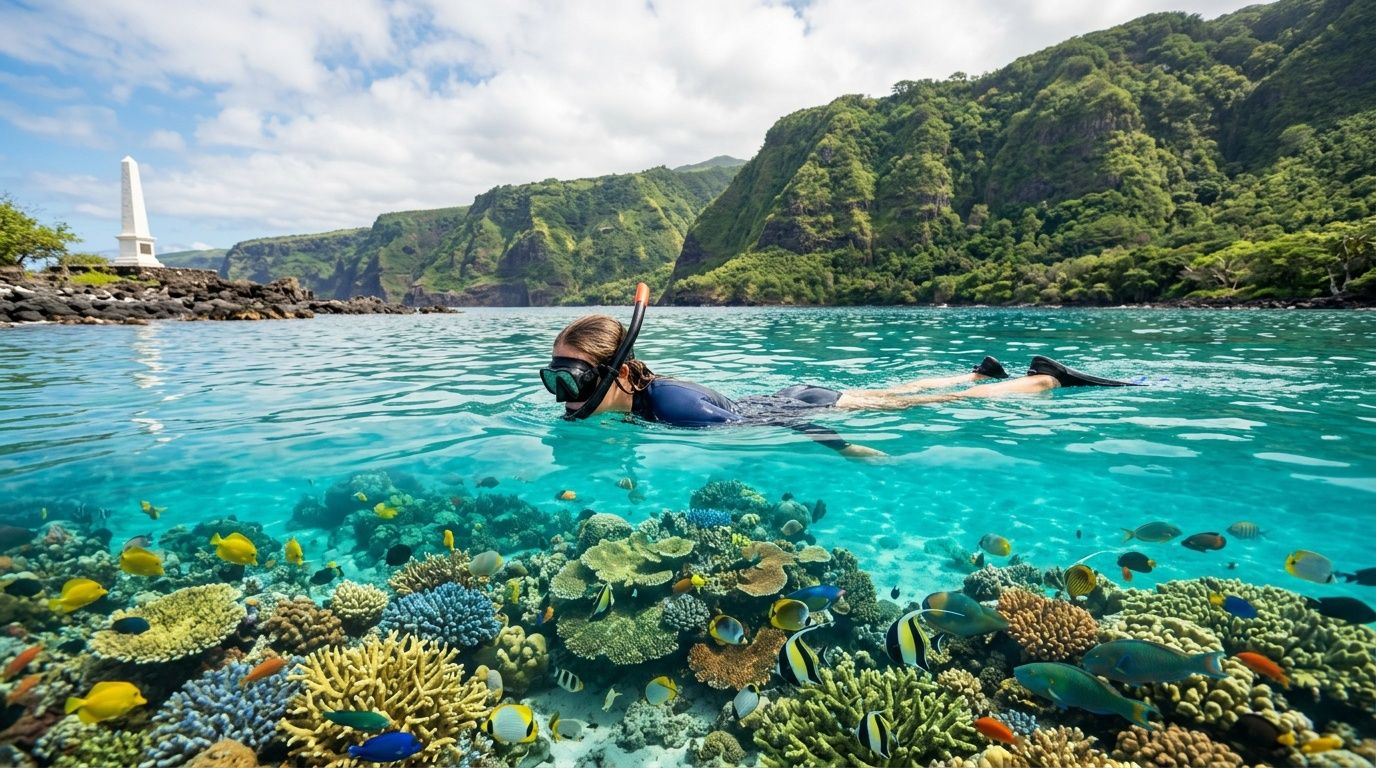Some snorkel spots are all reef and no story. Others are historic but not much fun in the water. Kealakekua Bay holds both.
