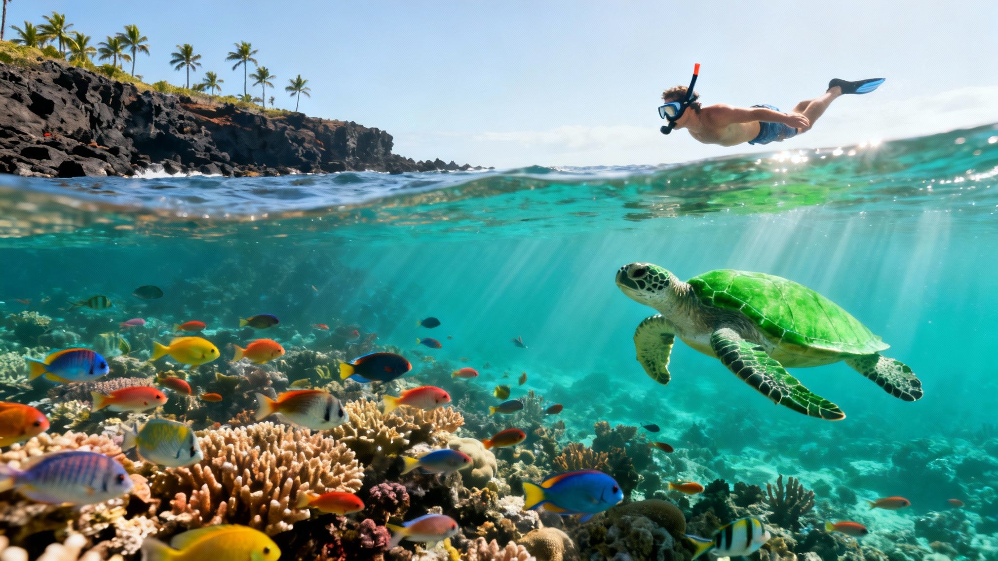 | Mahaiula Beach – Remote Reef Adventure | Remote access; 15–20 min hike over lava; challenging entry | No facilities or services; bring full gear, water, navigation | Pristine reefs with exceptional visibility (100+ ft calm days); low visitation | Advanced snorkelers, researchers, solitude seekers | Pristine, uncrowded reef ecosystems; excellent visibility and photo opportunities |