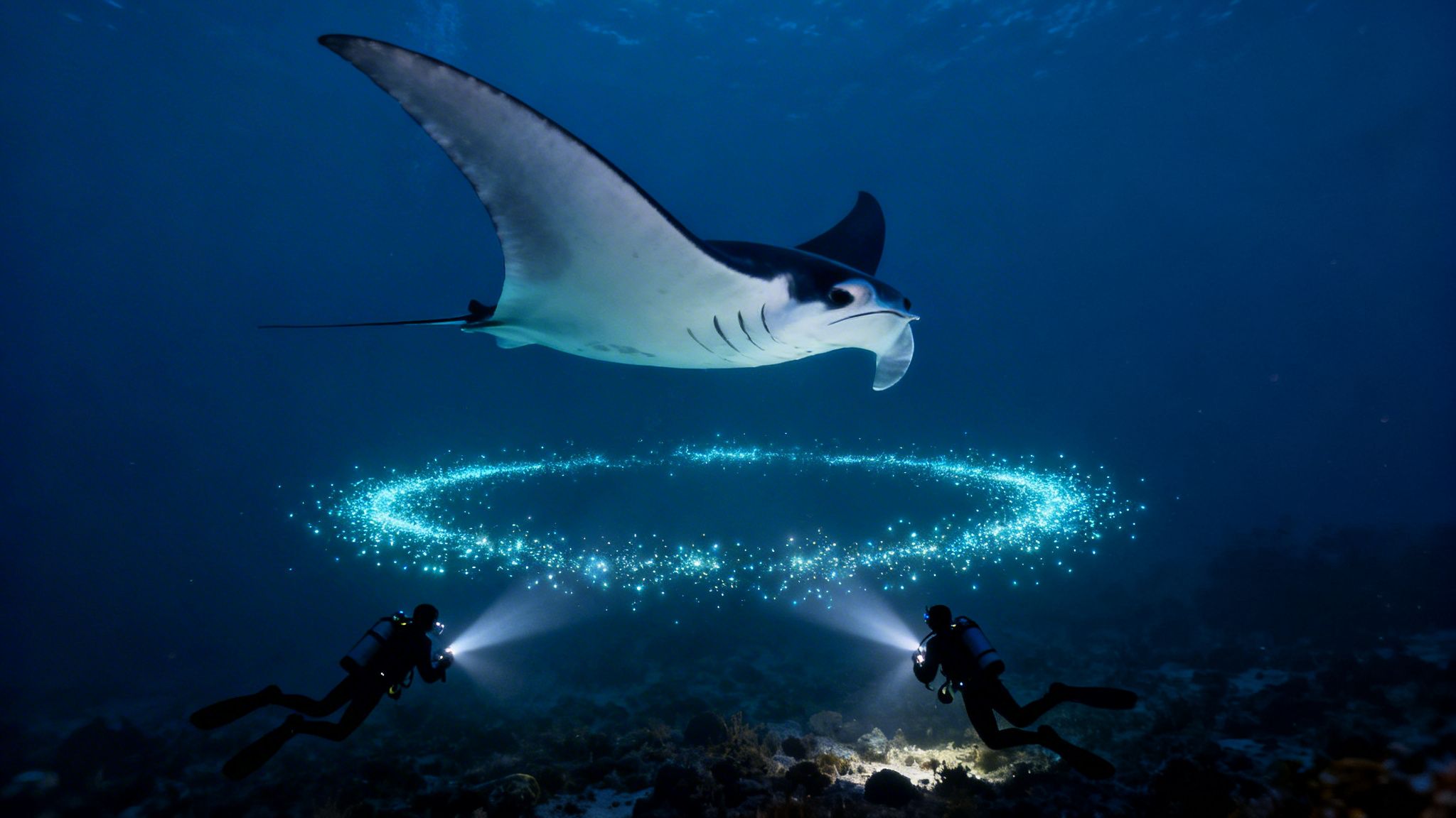 At first, there's just a quiet hum of anticipation. Then, a shadow emerges from the darkness. A massive, graceful shape glides into the light—a giant manta ray. Before you know it, another follows, and then another. They perform this incredible aquatic ballet, somersaulting effortlessly through the light beams as they feast on the clouds of plankton. Watching their immense wingspans, sometimes stretching up to 18 feet, pass silently overhead is absolutely mesmerizing.
