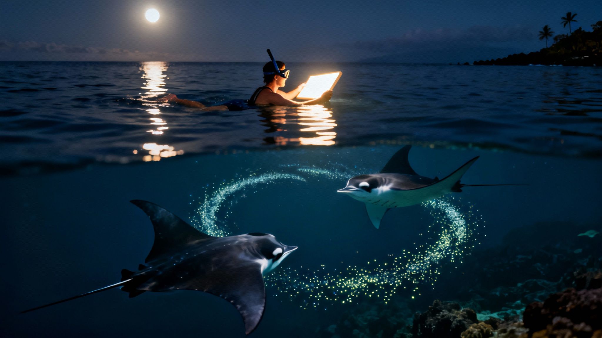 Here's a pro tip that a lot of people don't think about: the moon. If you can time your adventure around a new moon (or the few days before and after), you'll get the darkest night sky possible. Without bright moonlight filtering down, the glow from our tour lights becomes intensely focused. Any natural bioluminescence in the water pops, and the mantas seem to materialize out of pure blackness—it's incredibly dramatic.