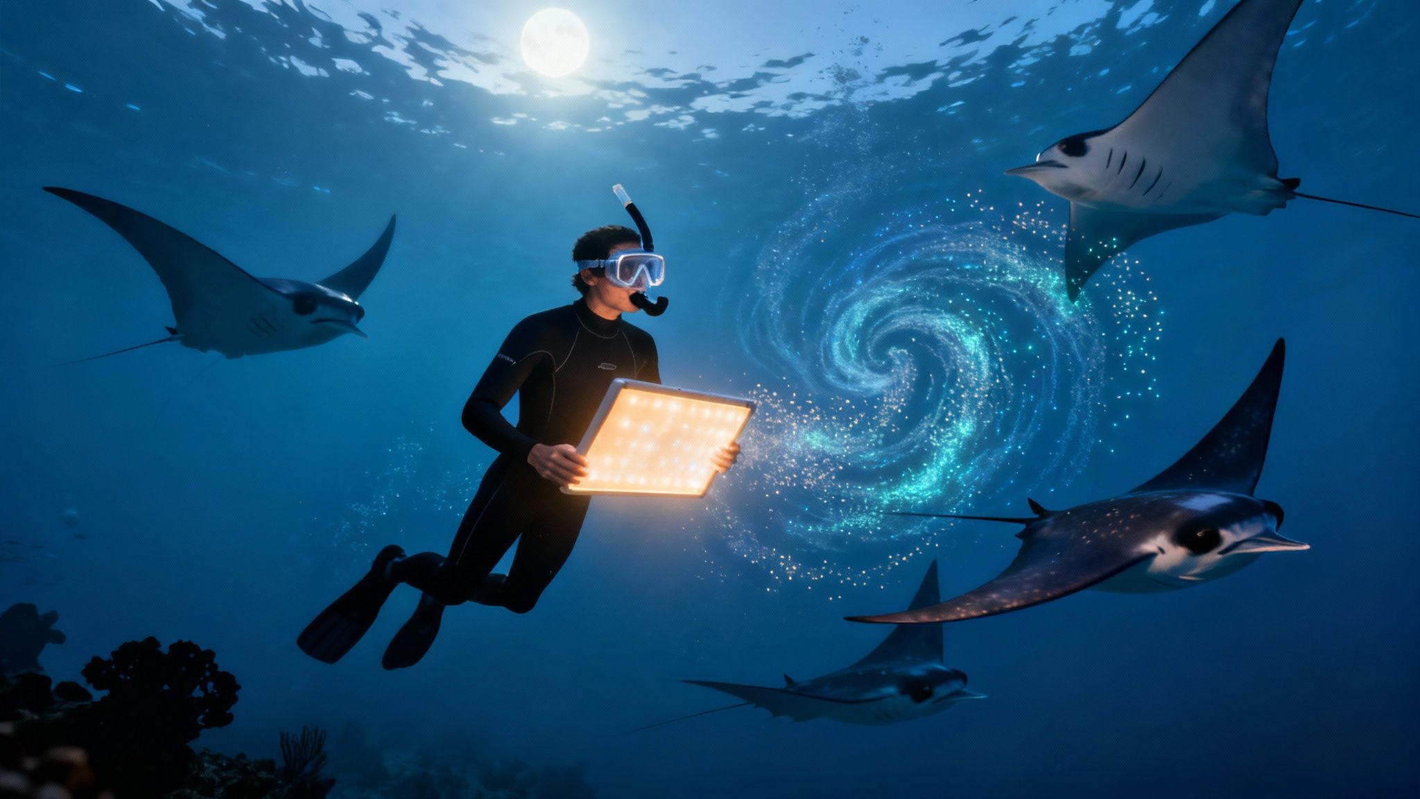 This glowing cloud of plankton is basically a dinner bell. The real magic kicks off when the first giant shadow emerges from the deep. A majestic manta ray, with a wingspan that can stretch over 12 feet, glides effortlessly into the light. Then another might appear, and another, until you're witnessing an incredible underwater ballet happening just inches beneath you.