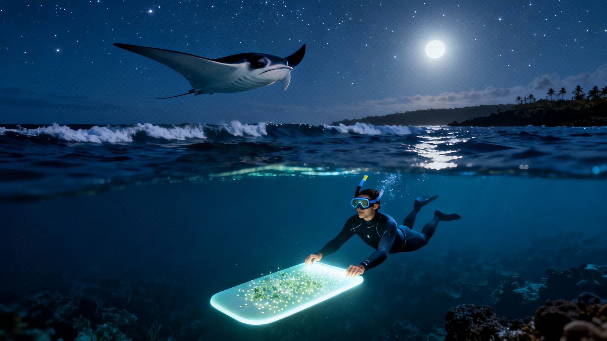 | Full Moon | More ambient light in the water. | Still fantastic! Mantas show up regardless of moon phase. | Great any time; conditions are consistently excellent. |