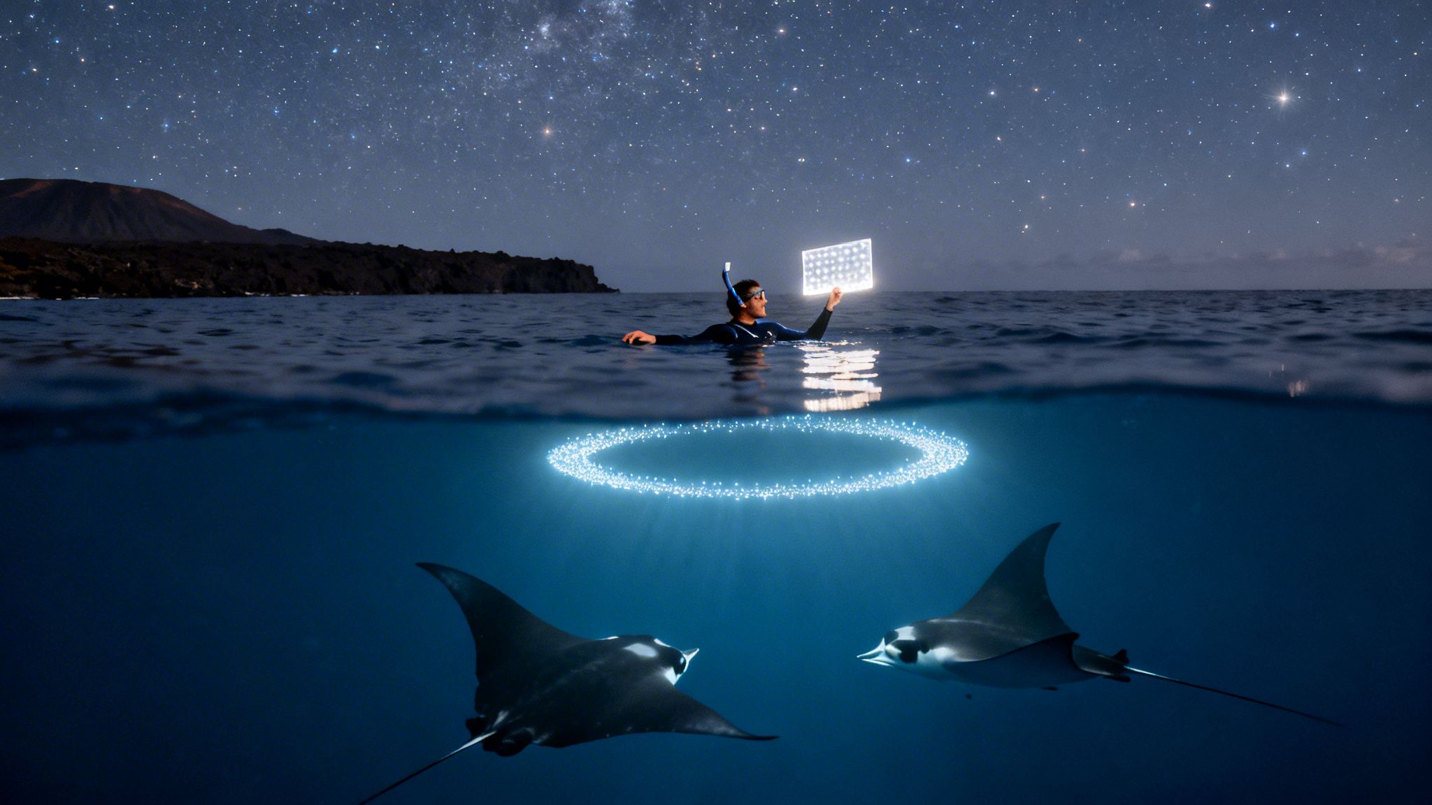 - A Floating "Dinner Bell": We deploy powerful, eco-friendly lights that attract swarms of plankton, which are the manta rays' favorite food.