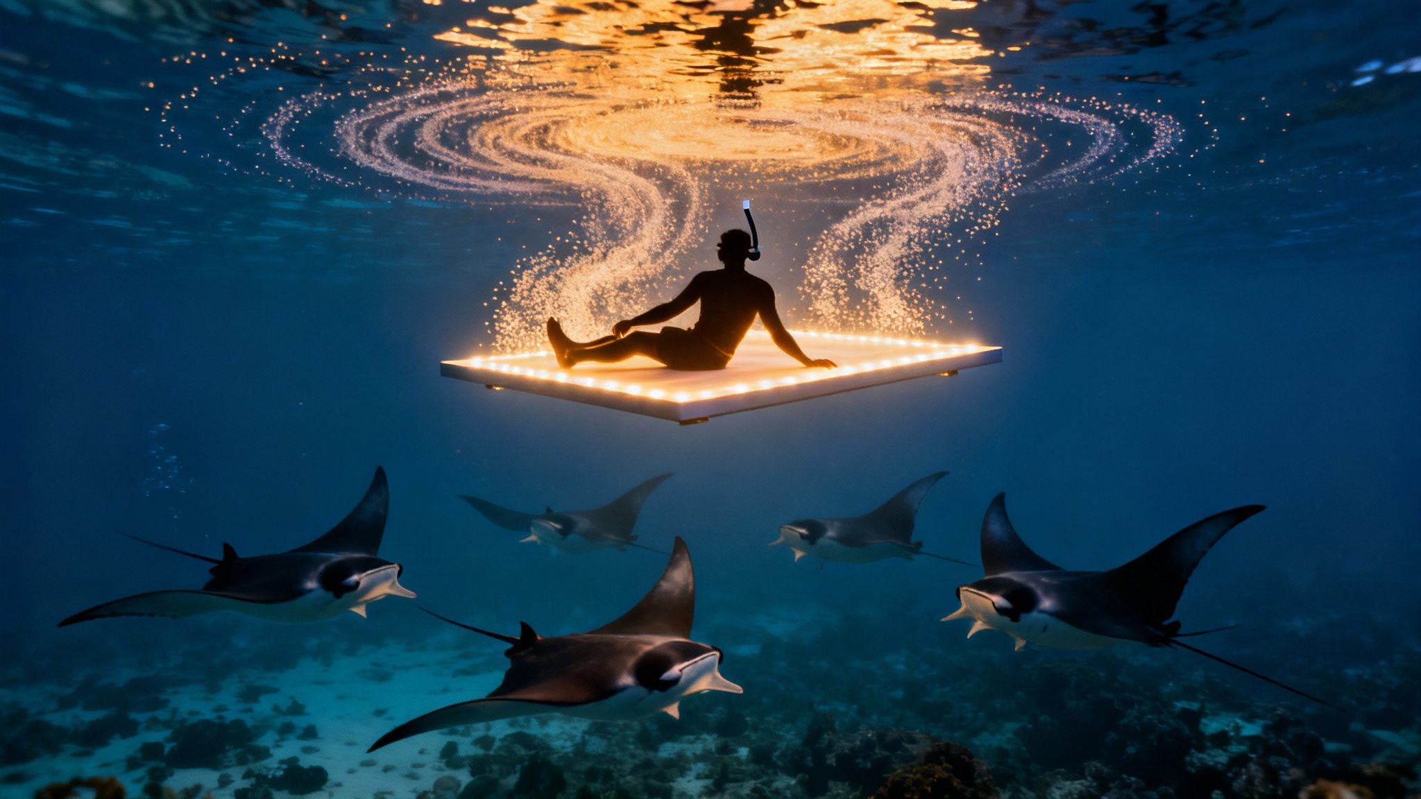 - Lights Down: Keep your lights (or the ones attached to your board) pointed straight down. This is what attracts the plankton and creates that glowing "dinner table" for the mantas below.