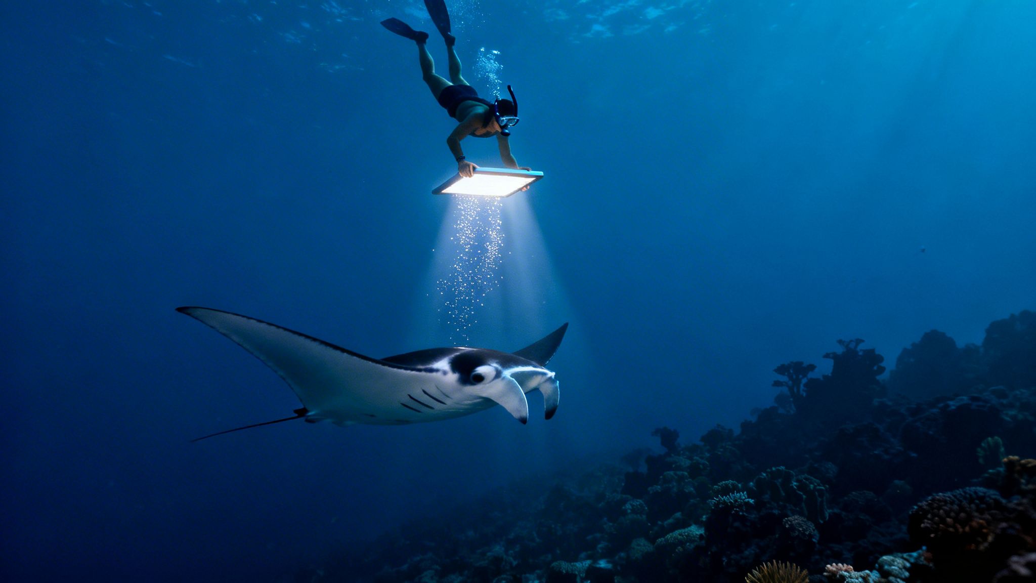 As the plankton gathers, you’ll start to see these massive, graceful shadows emerge from the deep. The mantas glide in, performing mesmerizing barrel rolls and loops just inches beneath you. Your only job? Float, watch, and let the amazement sink in. It’s a completely passive and non-intrusive way to witness their natural feeding behavior up close.