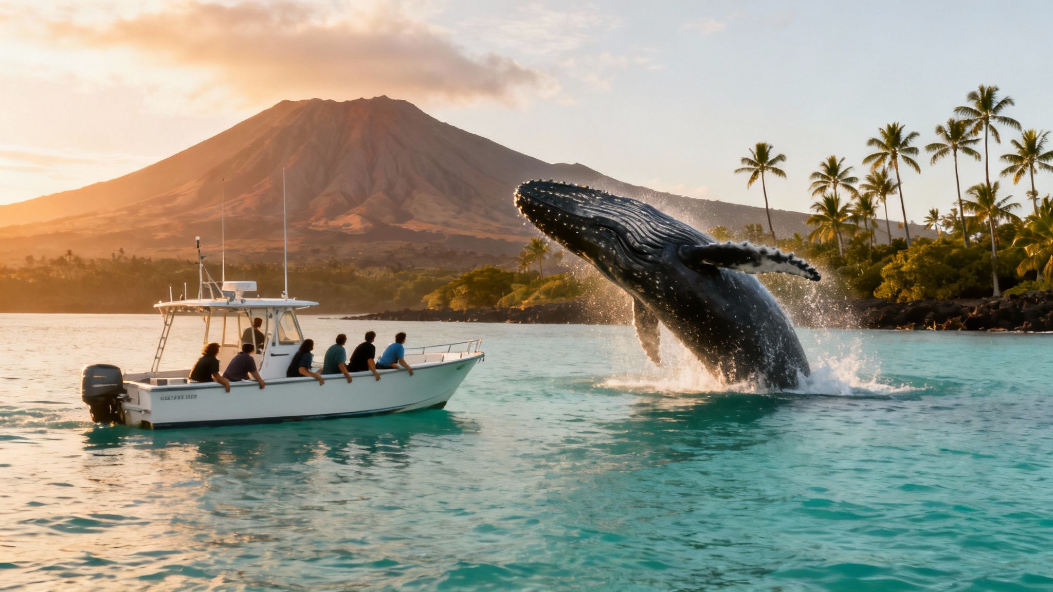 Imagine the sheltered bays around Kona and Puako as natural amphitheaters. Calm seas keep the boat steady—and your ears tuned to distant exhales and thundering tail slaps.